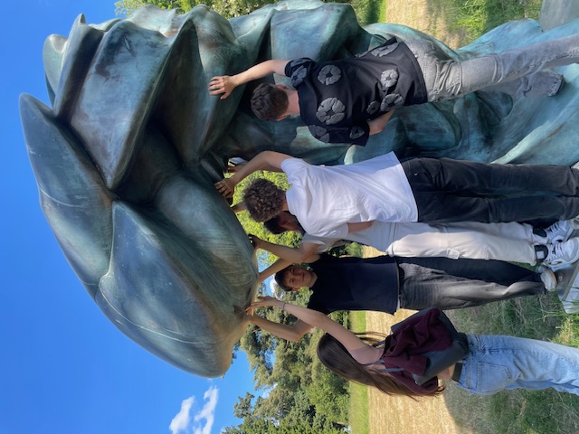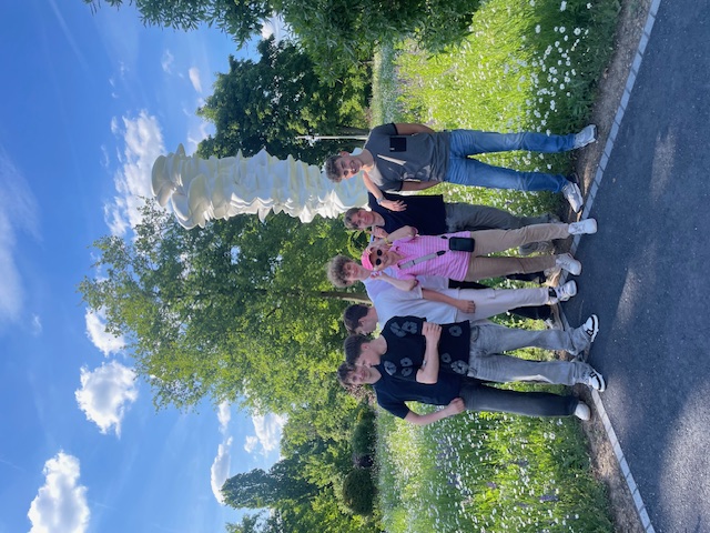 Wir haben schließlich versucht, uns den Plastiken haptisch und durch Bewegungen, wie Springen, zu nähern, um so einen besonderen Bezug zum Werk zu bekommen. Es war zwar sehr warm, aber trotzdem hat der Besuch Freude bereitet und die Schülerinnen und Schüler können jetzt mit dem Begriff der abstrakten Plastik etwas anfangen. Auch der Künstler Tony Cragg wird in Erinnerung bleiben."