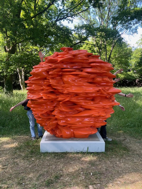 "Bei herrlichem Hochsommerwetter besuchten die Klassen Ea und Eb gemeinsam mit Frau Raudszus die Skulpturenausstellung von Tony Cragg auf der Darmstädter Rosenhöhe. Im satten Grün des Parks sind die abstrakten Plastiken gut positioniert und wirken bei Sonnenschein besonders prägnant.