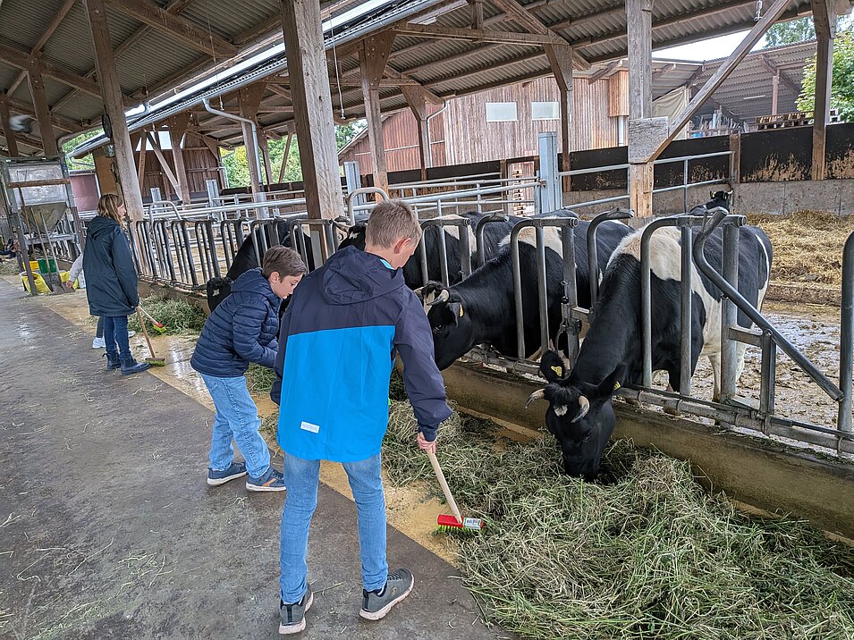 Auf dem Lernbauernhof konnten die Schülerinnen und Schüler viele Dinge rund um die Milch und den Käse entdecken. Sie lernten den Prozess der Butterherstellung kennen und durften sogar selbst Butter herstellen.