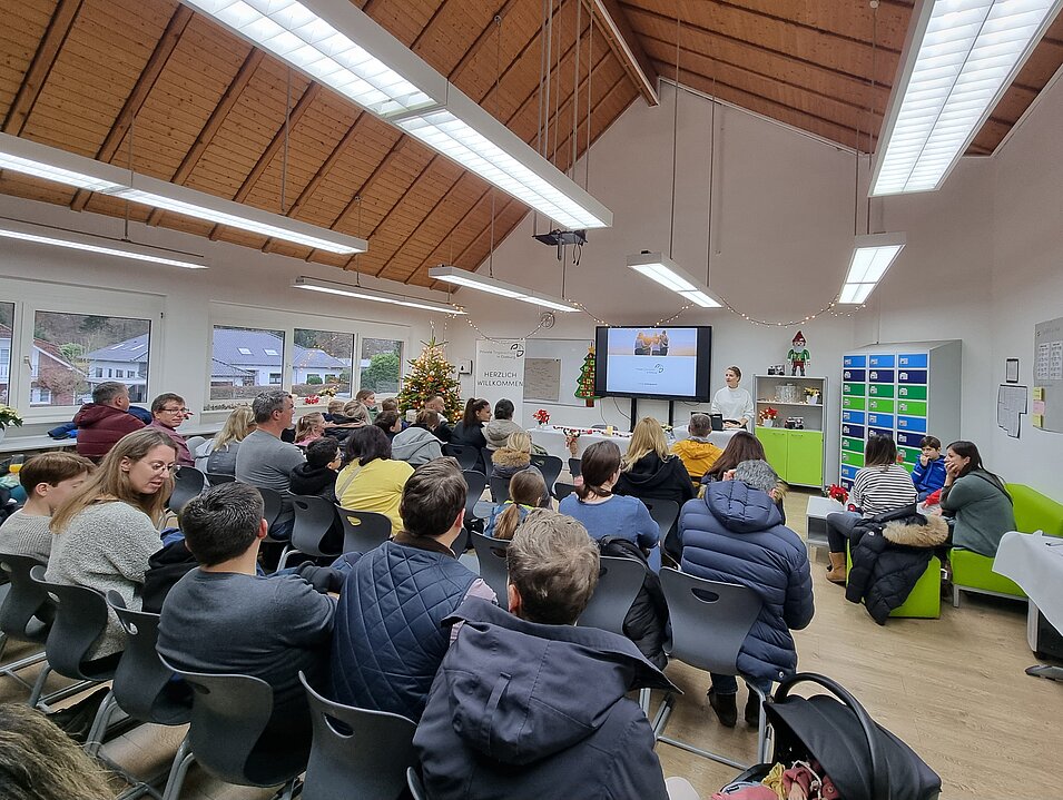 Es gab allerlei weihnachtliche Leckereien, für die Kleinen Kinderfilme mit Popcorn im schuleigenen Kino, eine Modenschau, auf der die Schulkleidung präsentiert wurde, Schulführungen, Bastelangebote, physikalische Experimente und nicht zuletzt einen Vortrag für all diejenigen, die sich für das Schulkonzept der Integrierten Gesamtschule interessierten.
