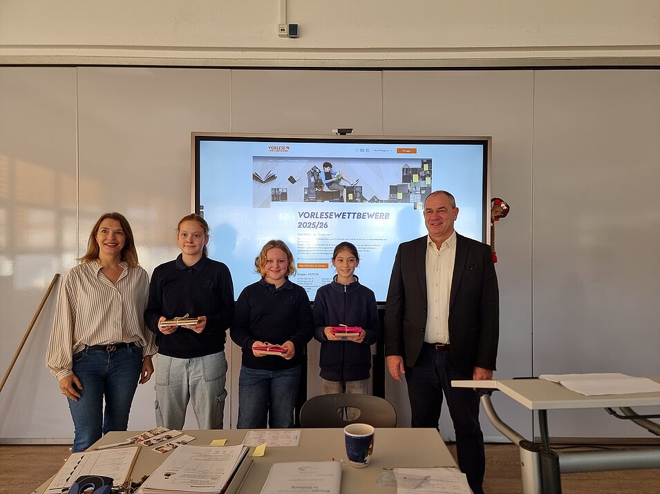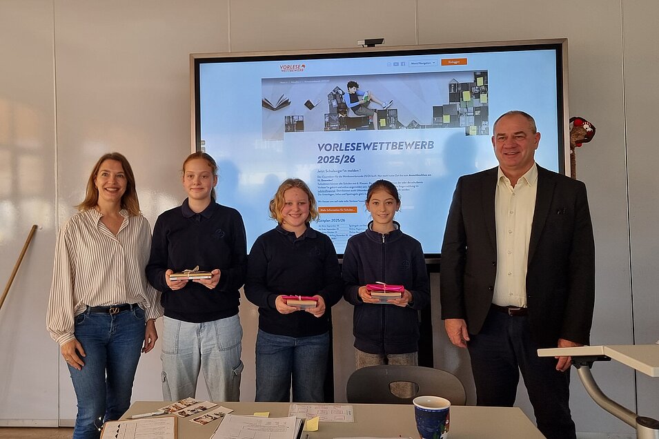 In dieser Woche hat der diesjährige Vorlesewettbewerb in der 6. Klasse stattgefunden. Im anschließenden großen Finale wurden aus dem Kreis der zehn besten Leserinnen und Leser der Klasse, die drei Besten ermittelt. Die Schülerinnen und Schüler durften den Juroren Frau Reitner, Frau Steitz, Frau Tenebruso, Herrn Winterscheid und Herrn Reimer sowie der gesamten Klasse aus ihrem Buch vorlesen.
