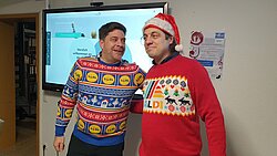 08.12.2025Am Montag, dem 08.12.2025 ist die gesamte Schulgemeinde aufgerufen, ihre "schönsten" Weihnachtspullis zu tragen und allgemein in "weihnachtlicher" Kleidung zu erscheinen.